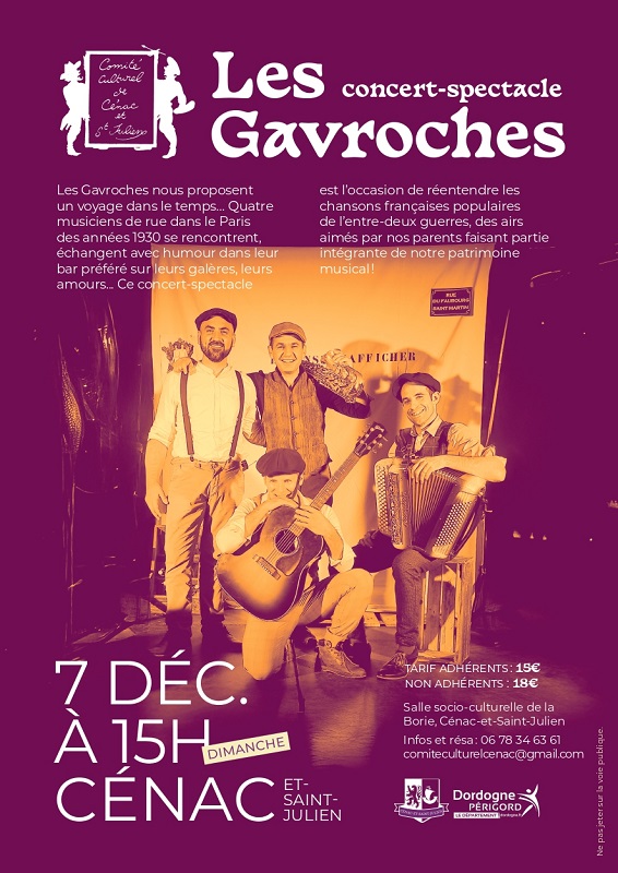 Le Comité culturel de Cénac et St Julien vous invite à participer à un concert spectacle le 7 décembre à 15h à la Salle socio culturelle de la Borie.