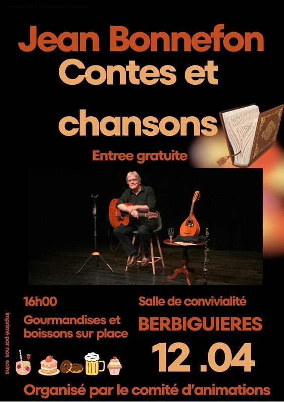 Le dimanche 12 avril à 16h00 a la salle de Convivialité de Berbiguières. Entrée gratuite.