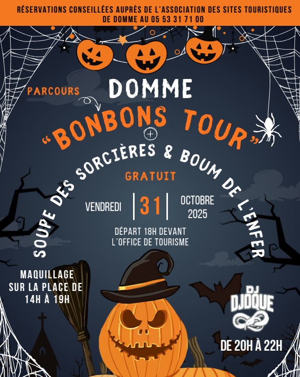 - 18h : Bonbons Tour au départ de l'office de tourisme - Pars arpenter les rues de la bastide pour récolter un maximum de friandises !
