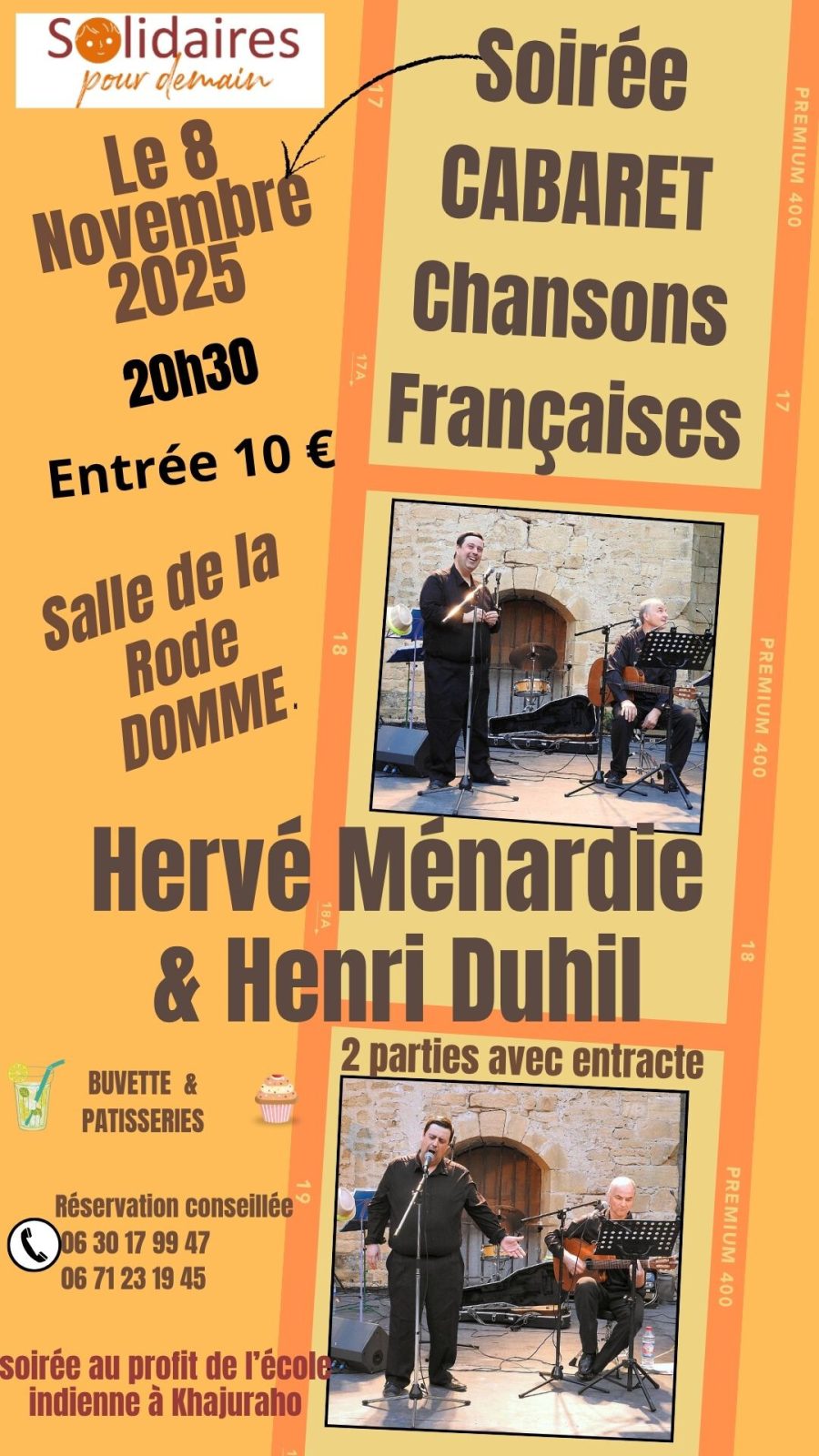 Soirée cabaret et chanson française avec Hervé Ménardie et Henri Duhil.