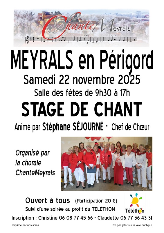 La chorale "Chante Meyrals" vous propose un stage de chant